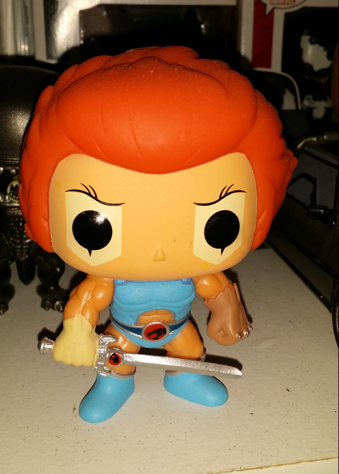 Que sorpresa cuando arribó este amigo a mi casa, el gran Lion-O. No sabía que había una serie de Funko de ThunderCasts una de mis series animadas favoritas. Llegó en el Summer Bunduru que me envió Juan (Gatonejo), el cual tenía como tema precisamente ThunderCats. Me encanta como se ve, la espada, el color del pelo en fin todo. La espada llego un poco doblada pero ya al pasar los días está en su lugar. Si son amantes a los ThunderCats definitivamente este debe estar en su colección.