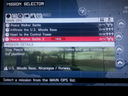 Hoy comencé o mejor dicho continue Metal Gear: Peacewalker ya que lo tenia en el olvido y lo incluí como parte del SBC 2013. Estaba esperando por juan (Gatonejo) ya que el tambien lo iba a comenzar para que me diera una manito en una mision que estaba trancado.